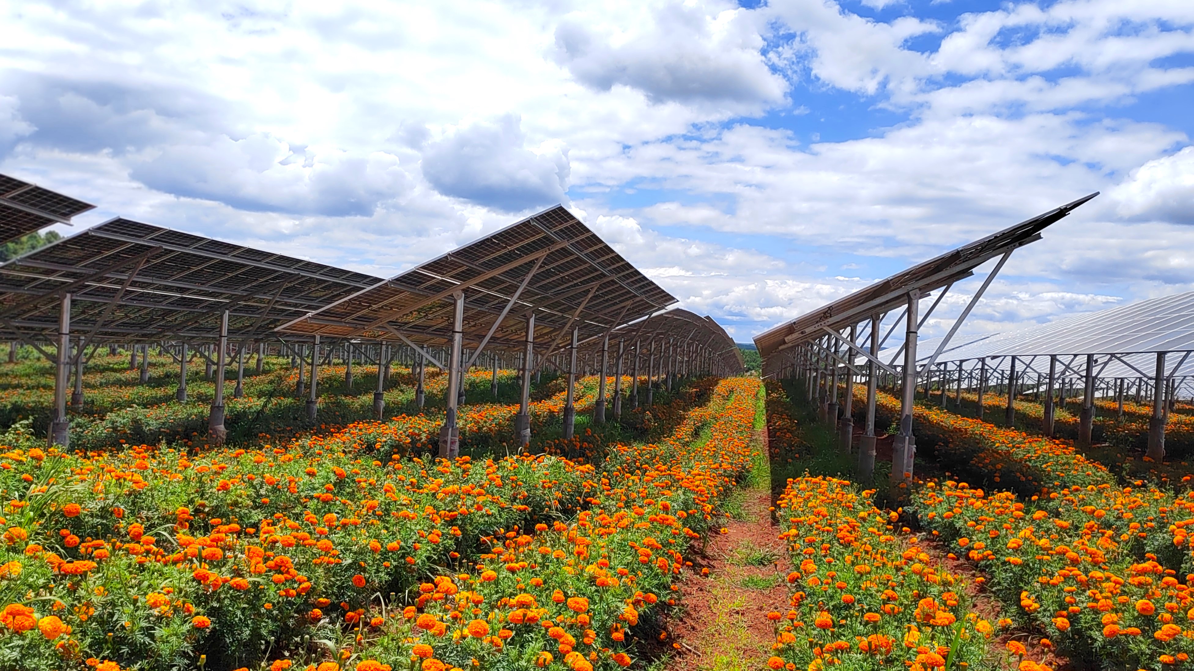 走近云南省曲靖市沾益區(qū)劉家莊的一處荒坡,排列整齊的光伏板與競相綻放的萬壽菊在陽光的照耀下格外璀璨奪目,當(dāng)?shù)匾揽俊肮夥?特色產(chǎn)業(yè)”的方式,走出一條經(jīng)濟發(fā)展與生態(tài)保護的“雙贏之路”。